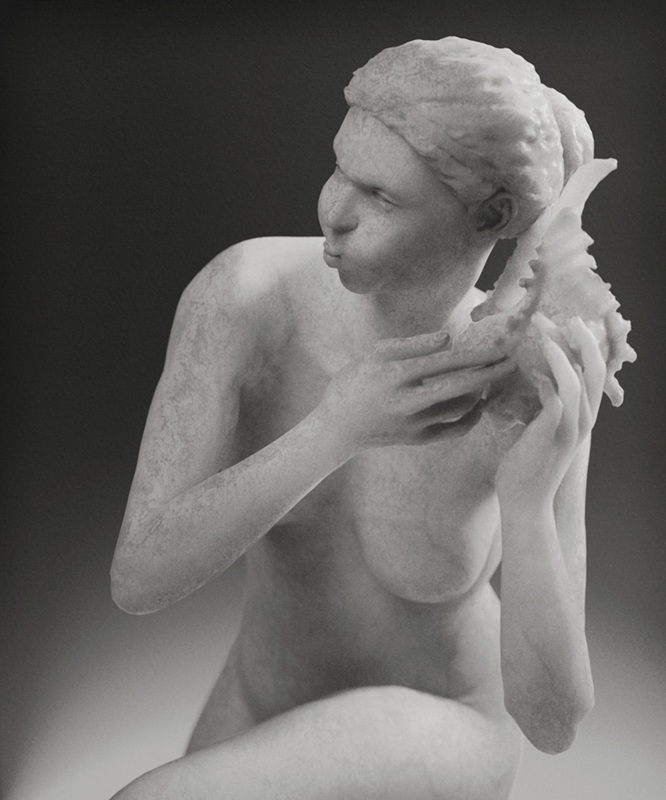 Virtual Black and White is a series images re-imagining the allegorical figurative sculpture in a 21st century form. In my work, I invite the viewer to stand somewhere between the imaginary and the real and consider new notions of authenticity and lived experience. These images depict antique sculptures whose history is chronicled, like bruises on skin, by the rough textures and blemishes on their surfaces – but these sculptures do not exist in physical form, and their history is an illusion. The scenes depict virtual objects and spaces created with 3D digital techniques commonly used to make convincing illusions in moviemaking. In this medium the ‘camera’ is directed inward, taking a picture of an imagined environment, instead of taking in the visible and material world.