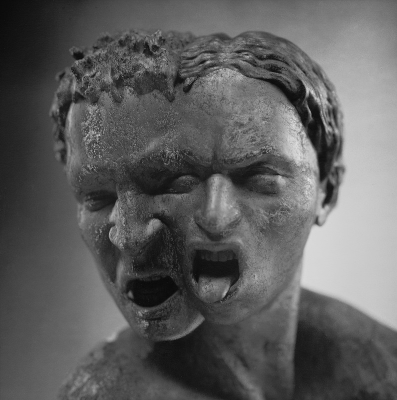 Like the figure in the allegorical sculpture tradition, the sculpted body here stands as a symbol of a seductive platonic ideal attainable only in the imagination. The grotesque, on the other hand, brings the body back to earth, to the corporeal and visceral – the faces, distorted with emotion, celebrate the physical and material life of the body.