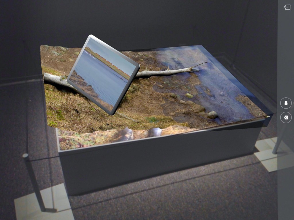 Photography Installation with AR 3D scene with sound. 3D scanning, video, and sound. 48″x68″x12″