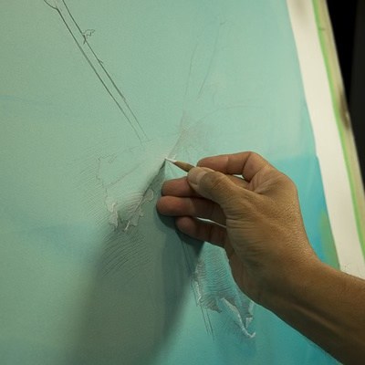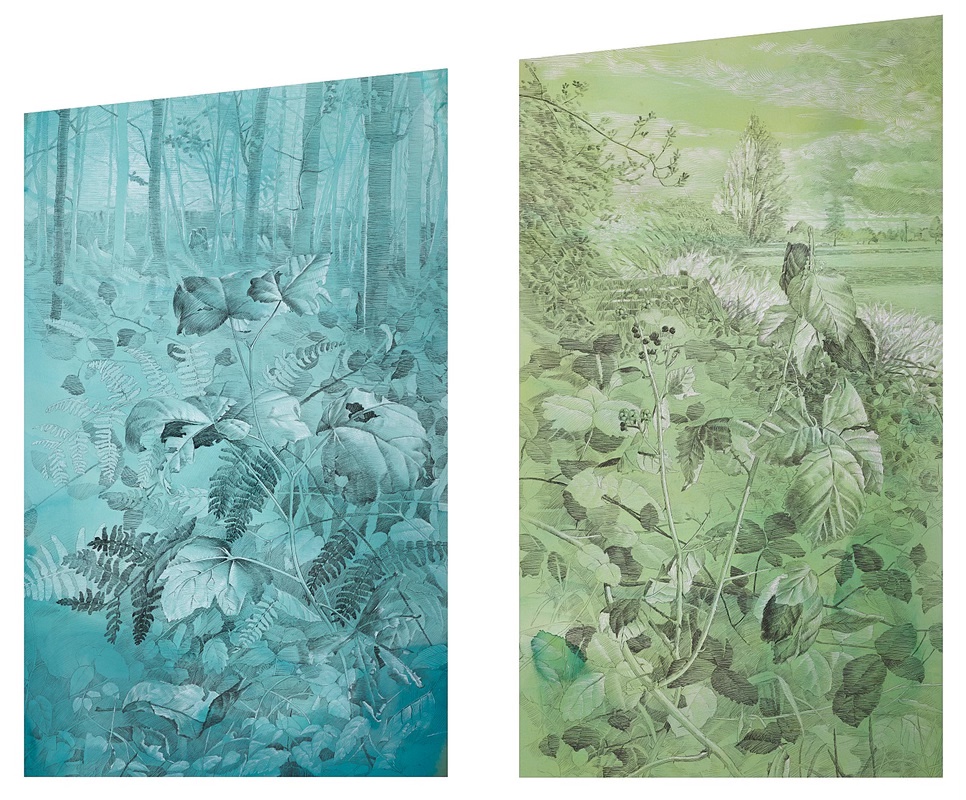 About the Mural Drawings: In this area of Newton we find a small forest, a large field, and many small areas of vegetation – all contributing to the life and character of the neighborhood. These areas are not spectacular examples of landscape; nevertheless, they are rich in detail and beauty, waiting to be noticed. We do not have to go far – there is inspiration to be found right in our backyard.