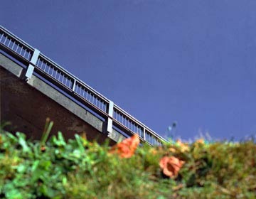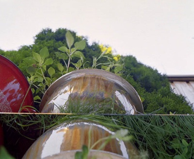 The series “City” presents a view of the sky and a close up view of the ground simultaneously. A mirror reflects the sky, and structures overhead, collapsing foreground/background, top/bottom, into one plane. This is landscape in the city, truncated, negating a panoramic vista.