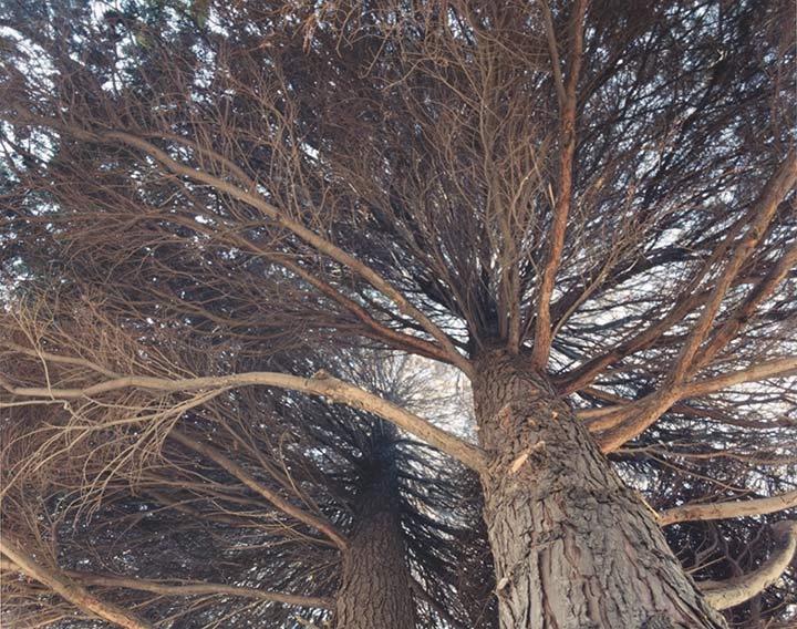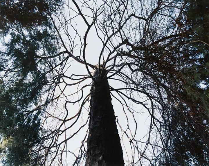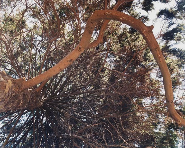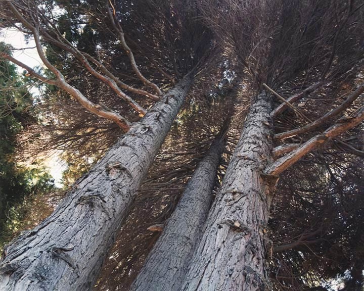 | This is a portrait of Tatlow Park in nine photographs. Taken from the path winding through this urban west coast park, these images record the juncture where natural growth and man-made experience of nature meet. The series initially took shape during frequent walks through this Vancouver park with my son. His fascination with the view from below the trees as we walked on the path through the park allowed me to see this place from a new perspective – literally experiencing it with fresh eyes. These images are taken in a single day, capturing a snapshot of the park from a child’s viewpoint at one particular moment. The natural forms resolve themselves into archetypal images evoking the world beyond the park as photographs of the view below the trees allude to abstraction, to the sinister, and even to monumentality. PM |